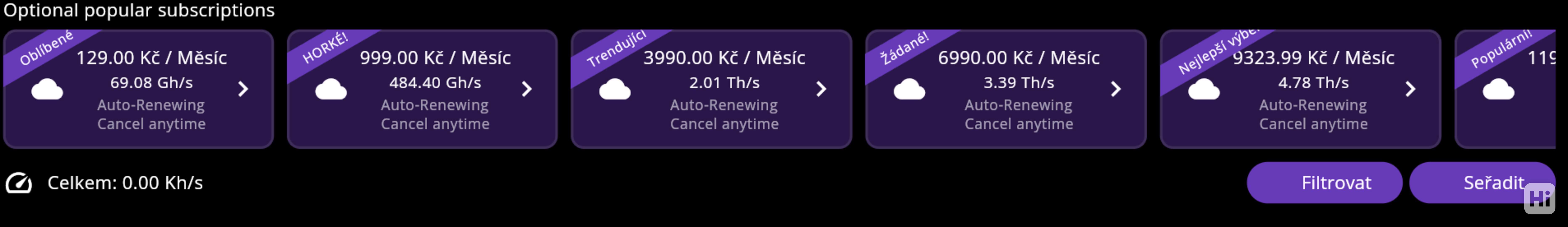Můžete těžit zdarma a obnovovat těžební stroj každých 7 a 24 hodin a nebo koupíte svůj těžební plán a budete těžit více bitcoinu. Těžební plán můžete koupit na měsíc, tři měsíce a nebo na rok.